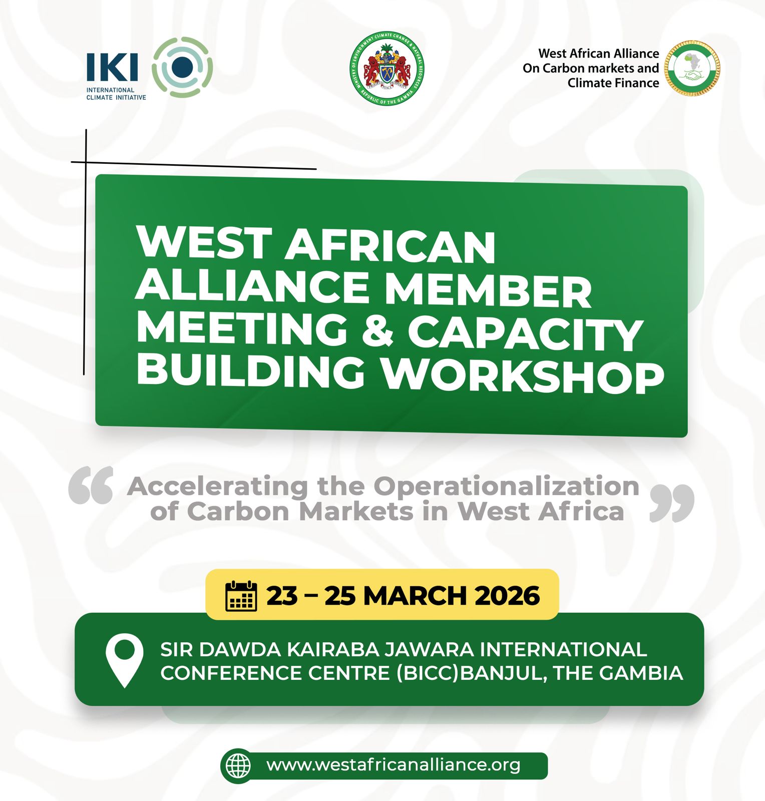Banjul, 17 March 2026 – The Ministry of Environment, Climate Change and Natural Resources (MECCNAR), in partnership with the West African Alliance on Carbon Markets and Climate Finance (WAA), will host a high-level regional meeting and national workshop in Banjul from 23 to 25 March 2026 focused on advancing carbon market preparedness and implementing Article 6 of the Paris Agreement, which enables countries to cooperate through the transfer of emission reductions.